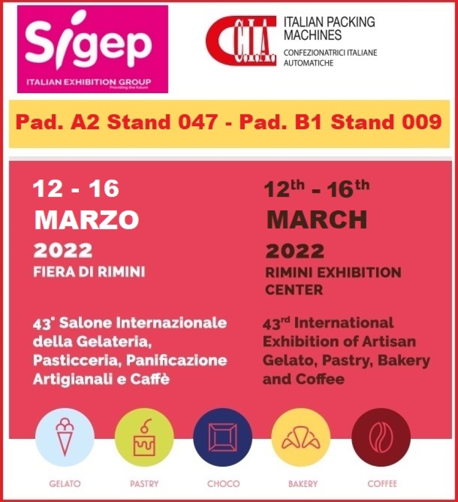 Vi aspettiamo a "Sigep 2022”, la fiera internazionale leader indiscussa nei settori della gelateria, pasticceria, panificazione artigianale e caffè.