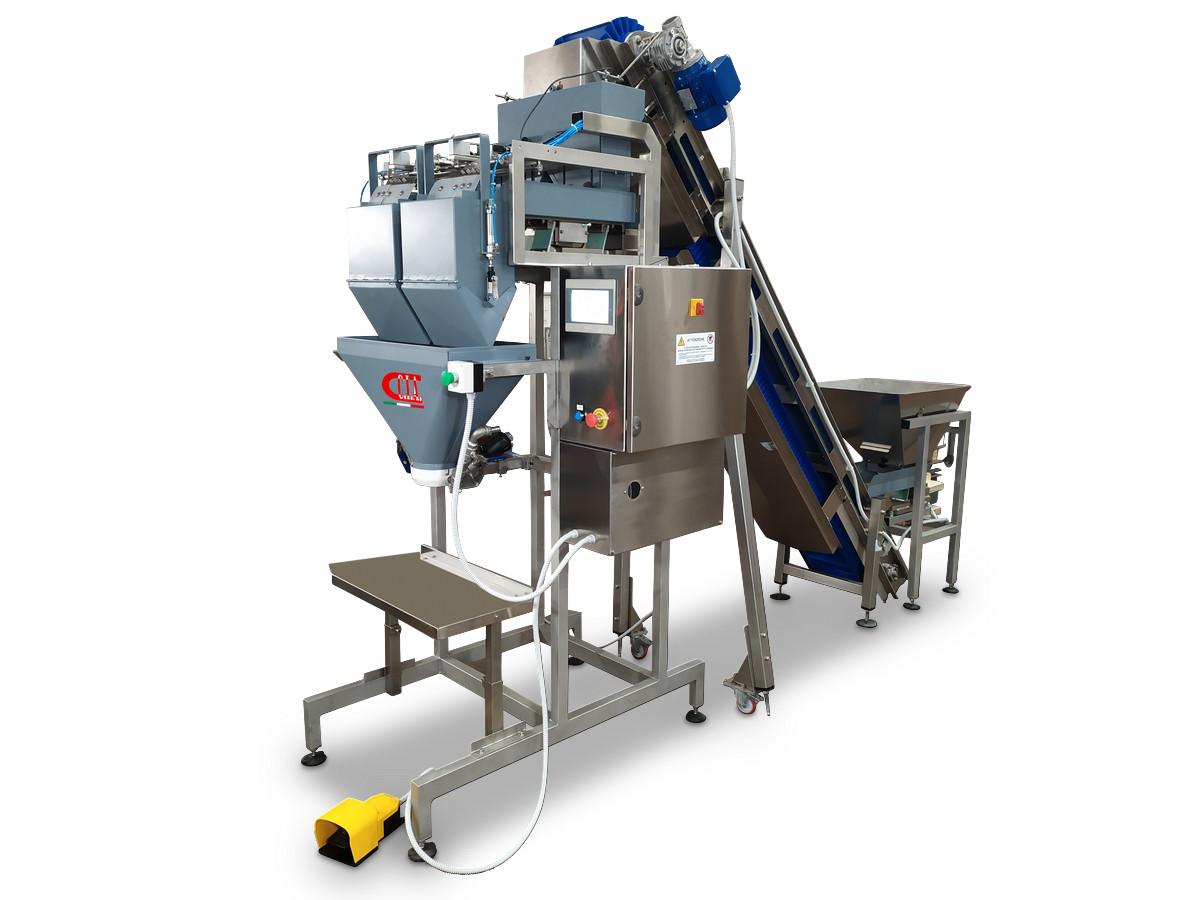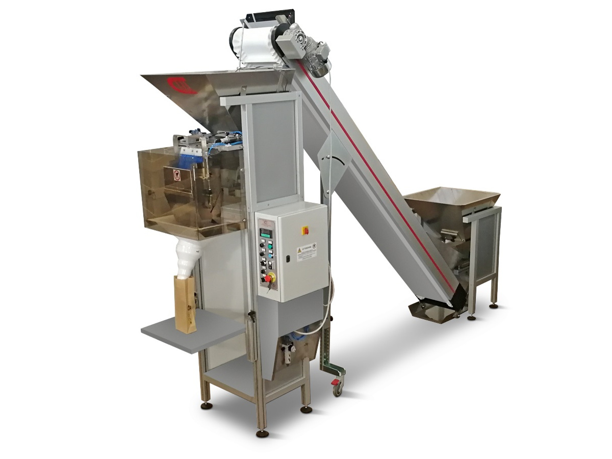 Fitted with upper large hopper, adjustable vibration speed and electronic weigher on the loading hopper, pedal, button or automatic unload of the products.